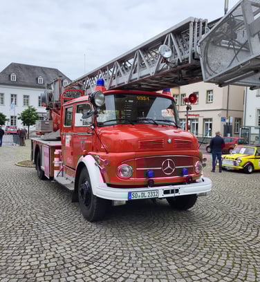 Unser historischer Feuerwehrleiterwagen ist ein echter Blickfang und verleiht jedem besonderen Anlass einen Hauch von Nostalgie und Eleganz. Ob für die romantische Fahrt zur Kirche oder als spektakuläre Kulisse für unvergessliche Hochzeitsfotos – dieser Klassiker macht Ihren Tag einzigartig.